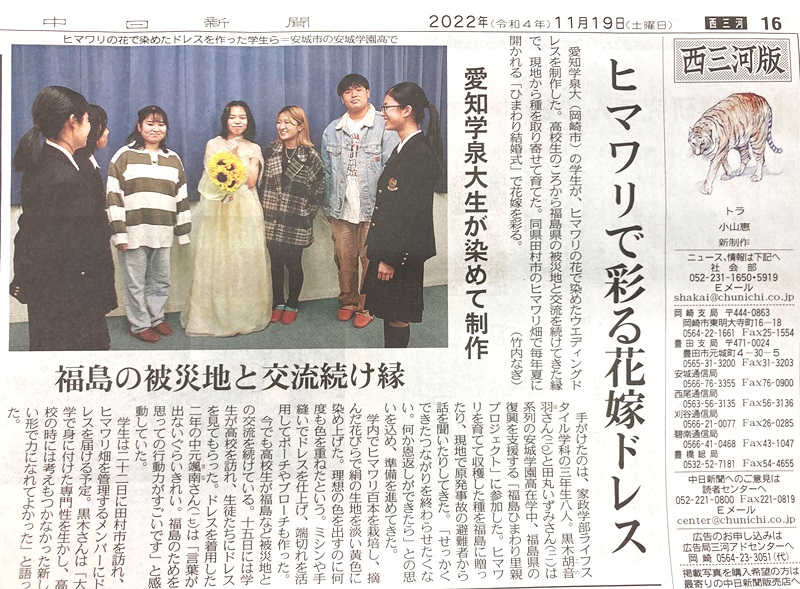 ライフスタイル学科 スタジオ活動『ひまわり結婚式』(中日新聞掲載)