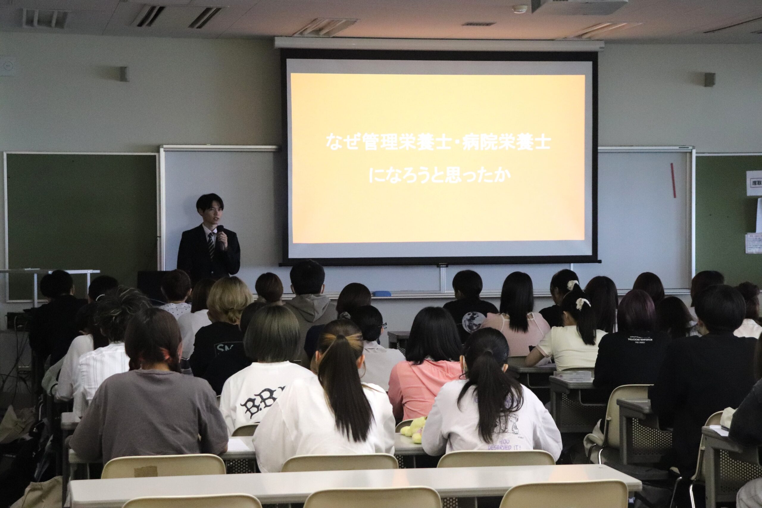 けれど,実習を重ねるなかで病院や臨床現場に魅力を感じ,卒業後は病院で働く道を選んだとのこと。進路の変化に,学生たちも「なるほど!」とうなずいていました😊