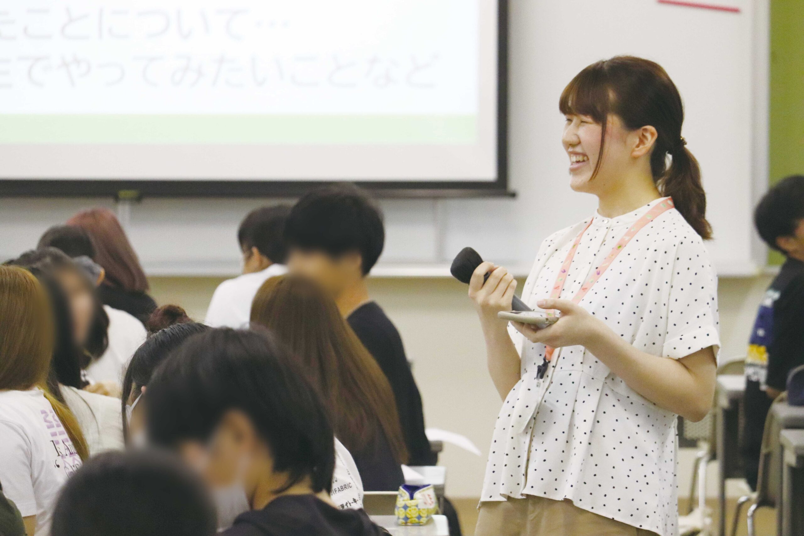 その流れで,受講している学生たちにも自己紹介を促し,6人1グループで「名前・最近あったこと・大学4年間でやりたいこと」を90秒ずつ発表する時間が設けられました。