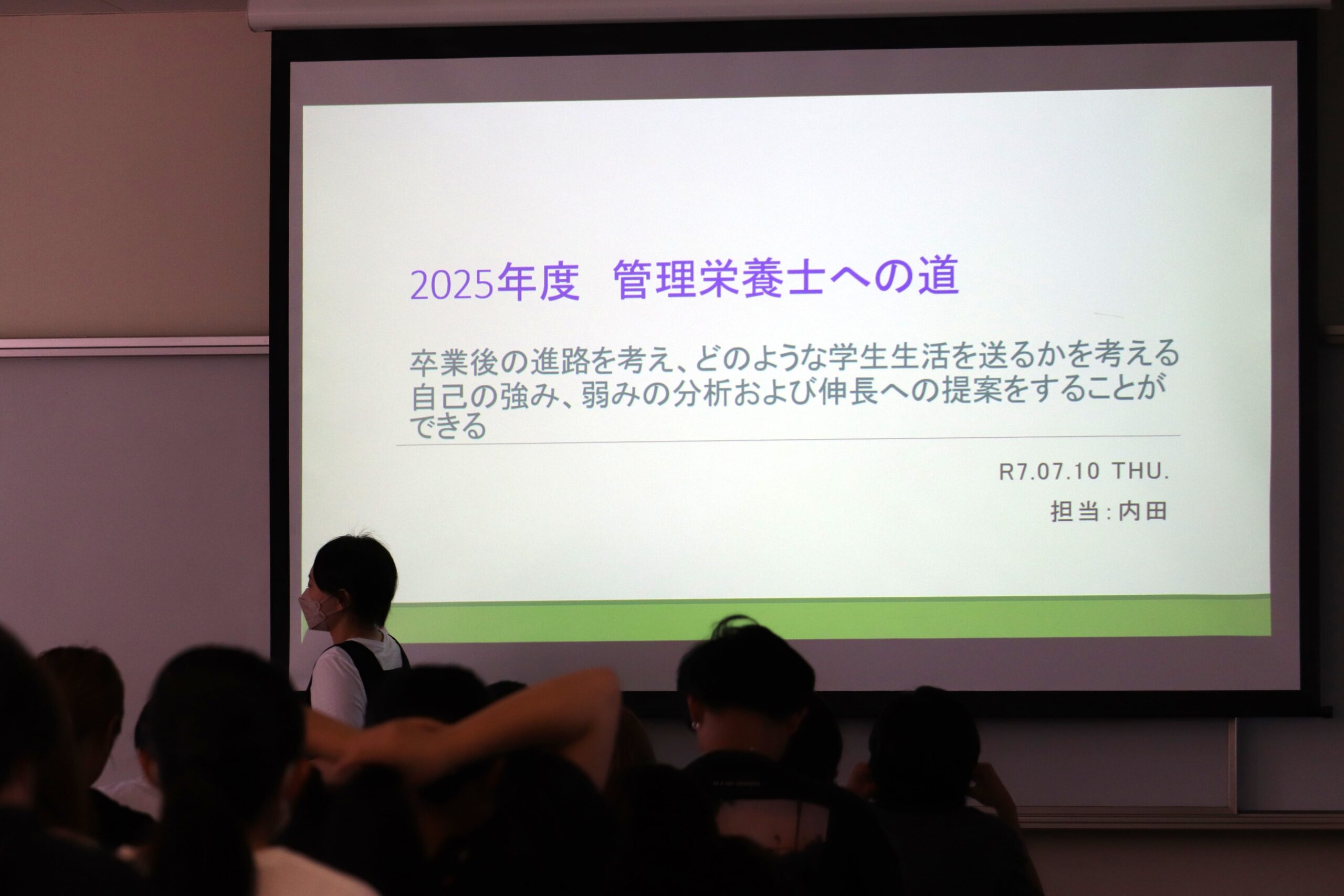 今日は,管理栄養学科1年生の授業《管理栄養士への道》第15回を取材しました。
