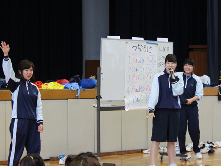 企画・進行は全て2年生が務め、予定通り競技が進むように出場者の招集や競技進行の指示、次の競技準備等も担当しました。皆が楽しめるようなアナウンスも不可欠です。こうした経験は将来保育現場で運動会を運営する立場になる学生たちにとって、良い実践事例となったことと思います。
