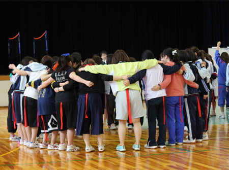 各チーム第一競技の「しっぽとり」から気合十分で、円陣を組み、声を掛け合って競技に向かいます。