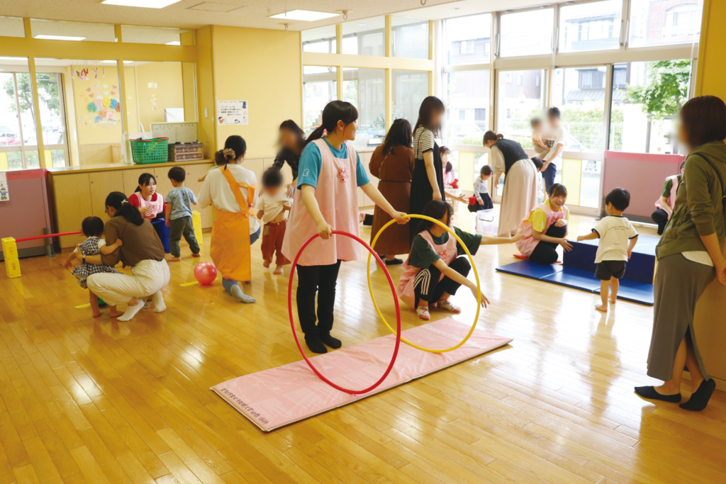 「何々になりたい」という気持ちが芽生えてくる3、4歳の時に、色々な体験ができるのでオススメです! ケーキ屋さん、お花屋さん、飼育員、建築士など様々なお仕事体験(ゲーム)を企画していて、私のクラスが担当する歯医者さんの体験では、歯1本1本をボーリングのピンに見立てて、虫歯菌を倒します。「ママの1日を知ろう」という企画もあって、ペープサートなどで忙しいママの1日を知り、おつかいに行ってママを助けたりします。