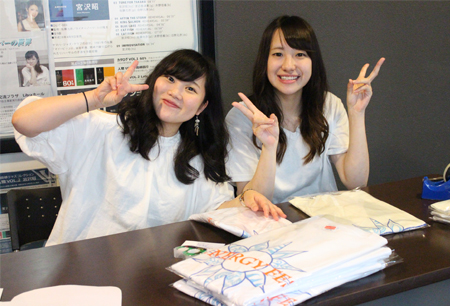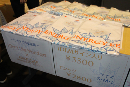 販売開始当初はスペースが奥だったため、来場者に気付いていただけないのでは?と感じることもありましたが「私たちがデザインしました!」と声を掛けると興味を持ってくださり「じゃあ、1枚」と購入していただいた方も!今回コラボとして発表させていただいた音楽グループ「I Don’t Like Mondays.(通称:アイドラ)」のサイン入り商品はファンの方に好評でした。サイズ展開が多く、質問が多く寄せられた際には急遽見本を用意して対応しました。