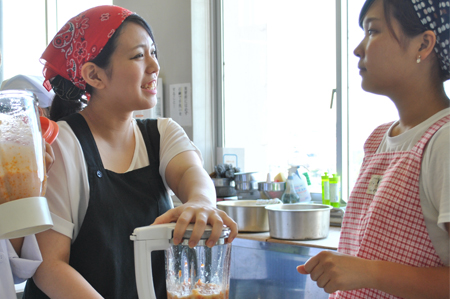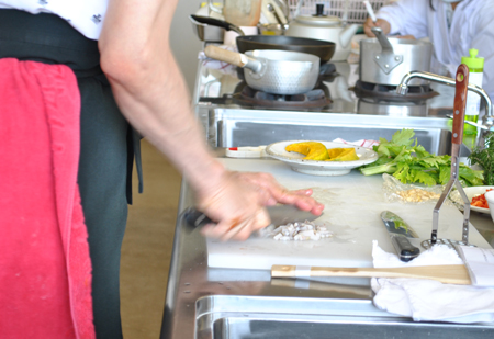 イタリアンレストランの元オーナーという経歴をお持ちのランディさんが手際良く料理を仕上げていく様子に、学生から感嘆の声が上がっていました。
