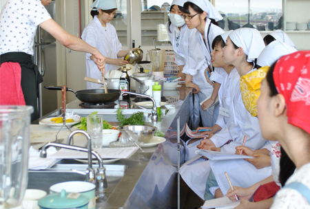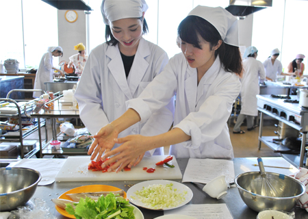 赤と青の表紙で書籍化もされている人気グルメブログ「究極のレストランランキングin名古屋」でお馴染みの人気覆面ブロガー「ランディ」さんをお招きして、生活デザイン総合学科 後藤ゼミと吉田ゼミの学生を対象に簡単料理教室を開いていただきました。