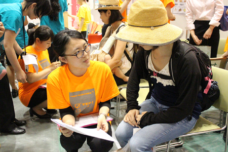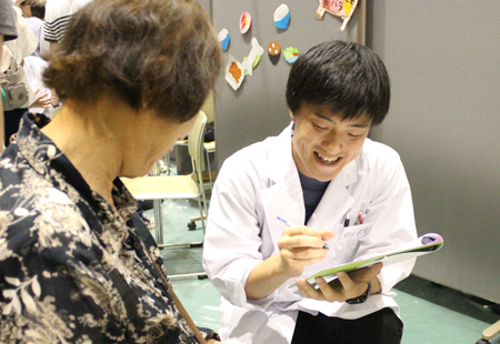 会場には大変な多くの方が来場され、本学のブースも「60分待ち」と掲示するほど大盛況でした。学生達はブース来場者が途切れることはなく常に対応に追われていましたが、最後まで笑顔を絶やさず頑張っていました。