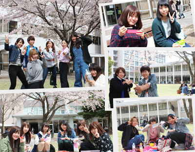 この時期は春の陽気に誘われて多くの学生が中庭でランチをしています。桜の下でシートを広げて、持ち寄ったお菓子を囲んでお花見ランチ♪ キャッチボールをしている学生もいました。みんなとっても楽しそうですよね(^^)