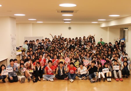 この会は新入生に向けたサークル紹介も兼ねており、各サークルメンバーが順番にステージに立ち、活動日と活動内容を紹介。運動系の某サークルは「イケメンがたくさんいます!」とアピールしていました(笑)。