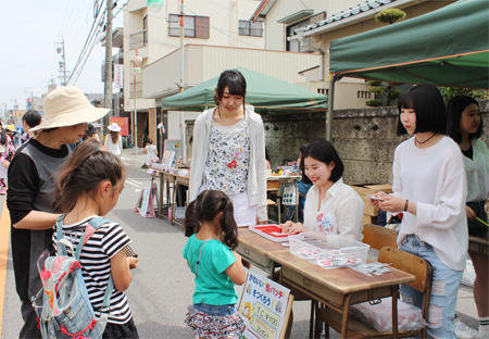 学生達はブース出店だけでなく、会場誘導なども一部手伝わせていただきました。韓国・烏山大学からの留学生も参加してくれて、共に楽しみながら地域交流活動に取り組むことができました。