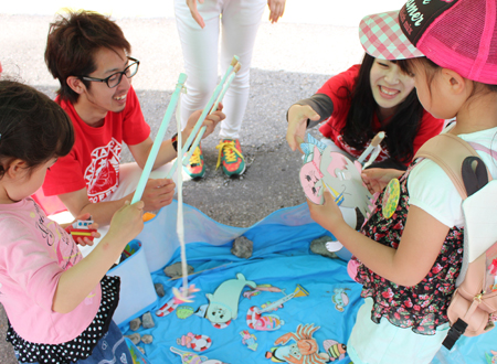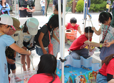 かき氷に行列ができるほど天候に恵まれたこともあり、学泉ブースにも大変多くの子ども達が遊びにきてくれました。