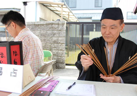 学生会はさかなつりゲームを行い、子どもたちが紙で作った魚をつり上げる度に拍手や歓声で盛り上げて子どもたちを喜ばせていました。一般の方には、こどもの生活専攻 羽場先生による「易占い」が大好評でした(休憩中の学生にも(笑))。
