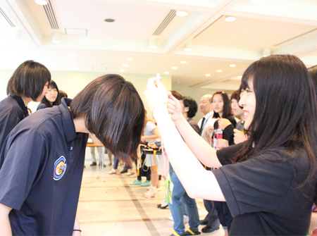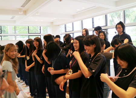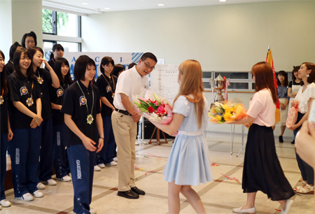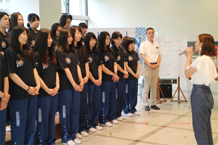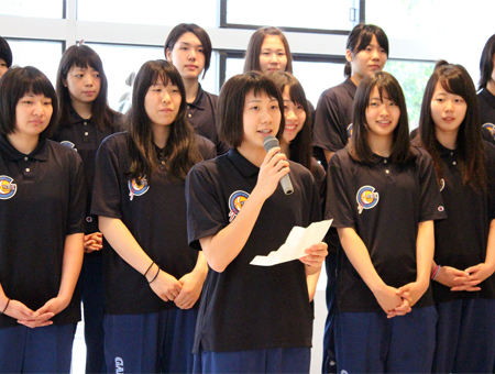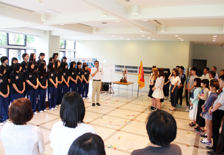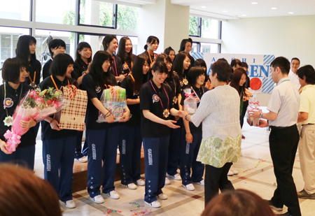 6月6日(月)~12日(日)に開催された「西日本学生バスケットボール選手権大会」で、4年ぶり21回目の優勝を果たした女子チームを称えて、お昼休みに学生会主催の祝勝会が開かれました。 お昼休みの短い時間でしたが、温かな良い会でした。選手の皆さんにいただいた感動に感謝の気持ちを込めて、選手一人ひとりに手作りのメダルが贈られました。 休む間もなく次の目標に向かう選手たちを引き続き応援します!