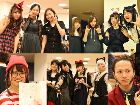 キュートなコスチュームから、本格的なホラーメイクまで今年も気合が入った仮装がずらり☆。 思わず「その顔、どうやったの?」と傷メイクを施している学生に話を聞いてみると「メイクは自分でやりました。傷はティッシュを使って作りました!」とのこと。素晴らしい☆。
