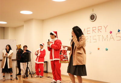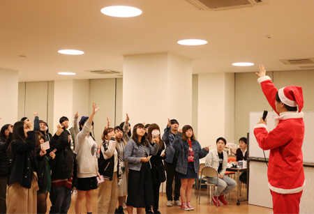 「冬休みを前に、みなさんをとっても楽しいX´masパーティーにご招待!」ということで、サンタに扮した学生会メンバーが盛り上げます!